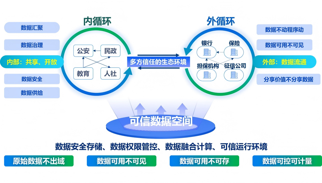 可信流通是数据赋能的关键基础。浪潮云作为智慧系统的全场景运营商,成功探索了技术突破与生态共建双轮驱动下的数据要素市场化新路径,构建了具备快速交付、统一运营能力的“标准化”可信空间数据流通利用服务平台。通过搭平台、建标准、统运维、保安全四维协同实现全局化推进,实现了从被动防护到主动免疫的跨越式升级,形成快速复制推广的数据产品及场景解决方案,有力支撑全国一体化数据市场、保障数据安全流动。基于平台能力,目前浪潮云联合济南财金集团已研发4款金融模型产品,依托社保等数据构建 9800余项指标,助力“泉融通”平台放款金额超14.71亿元。