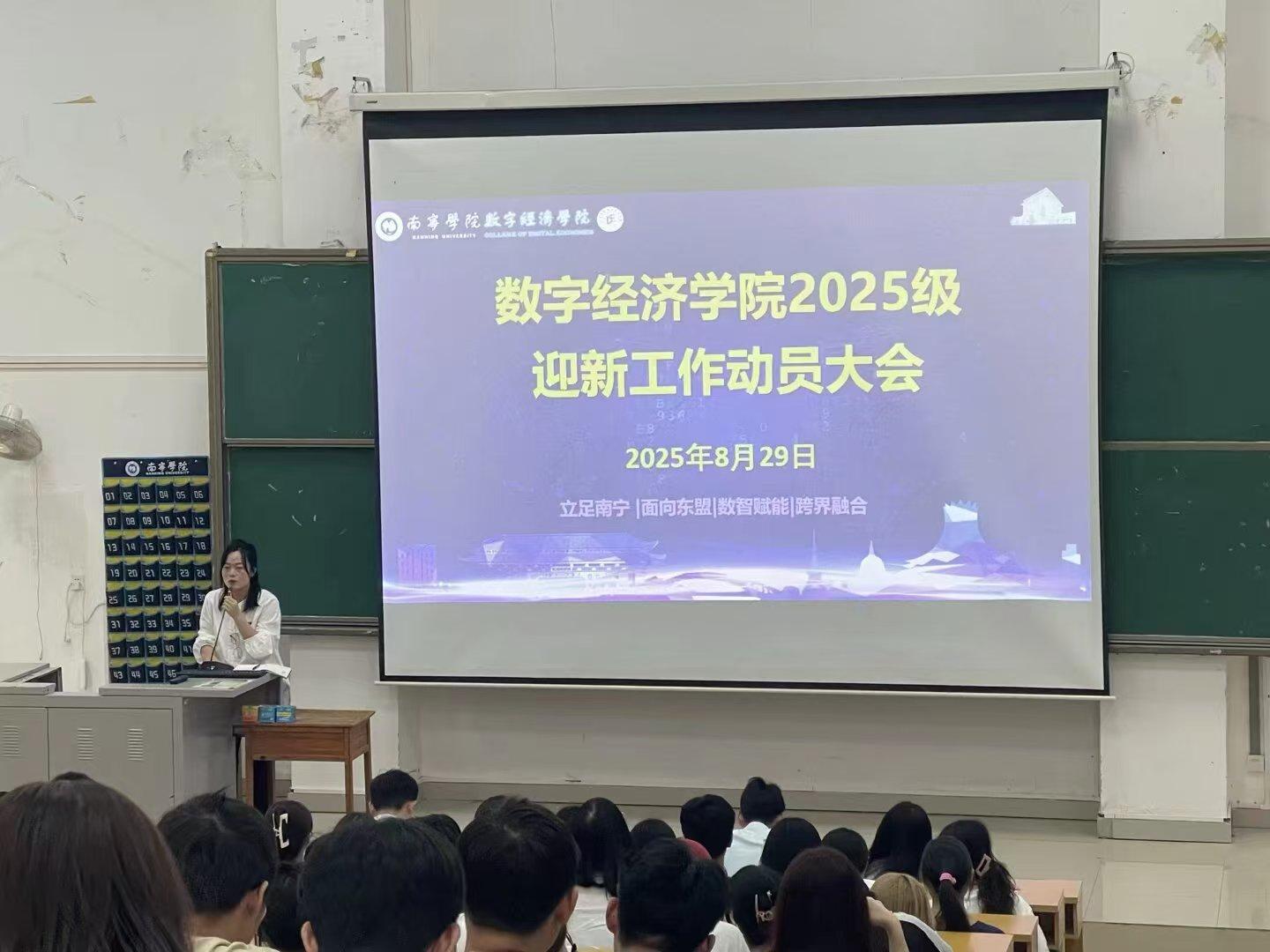 金秋时节,桂花飘香,我们迎来了新一届的学子。为了确保2025级新生的顺利入学,8月29日中午11点,数字经济学院在敷文园C104教室召开迎新工作动员大会。出席大会的有党总支副书记韦丹,全体专职辅导员,以及各级学生组织干部和接待新生的志愿者。会议由韦瑞凯科长主持。