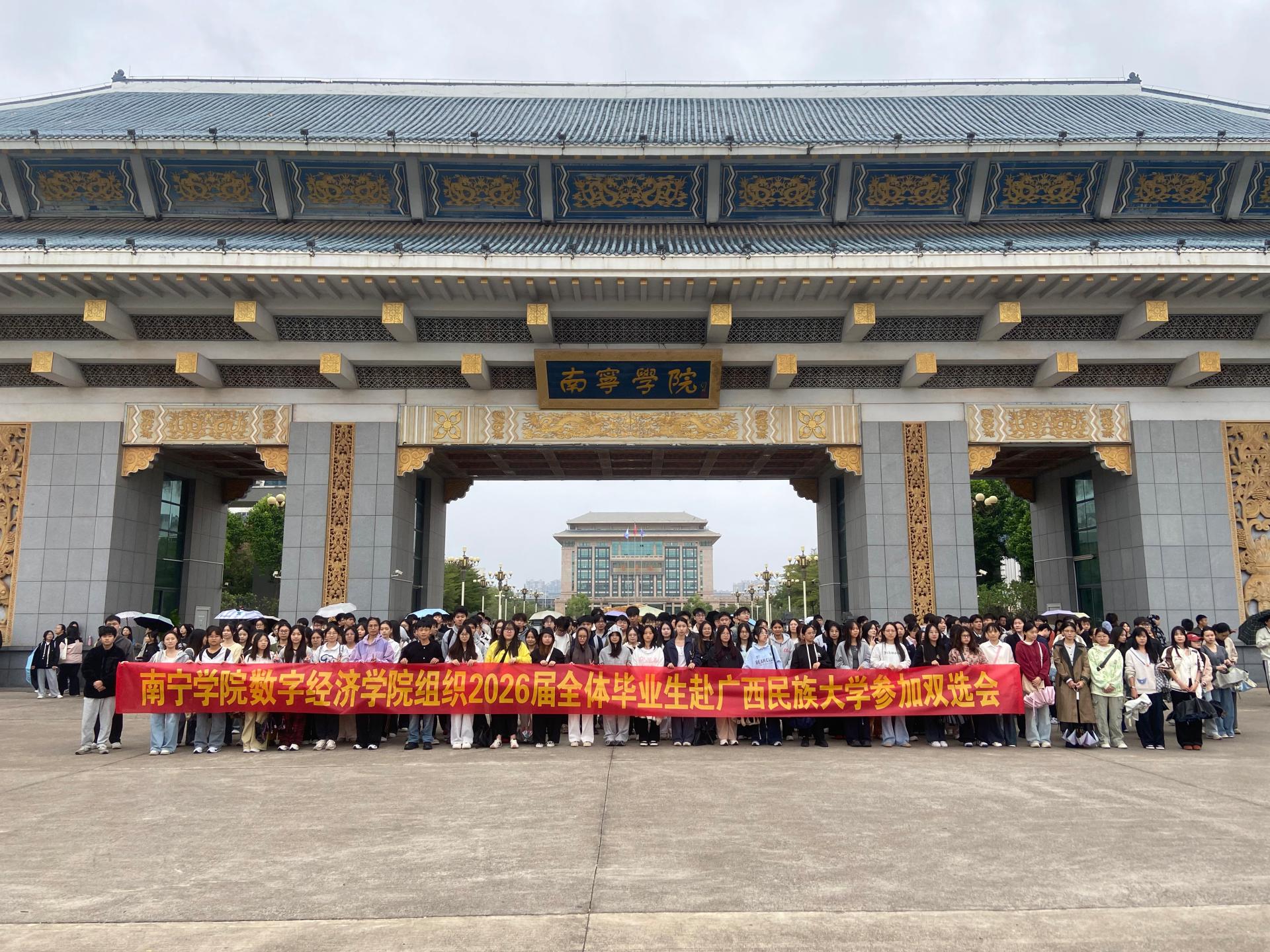 为进一步拓宽我院 2026 届毕业生就业渠道,助力学子精准寻求优质岗位、提升就业竞争力,10 月 23 日 8:00-12:30,数字经济学院组织 2026 届全体毕业生前往广西民族大学思源湖校区,参加广西 2025 年 “百城千校万企” 促就业行动(秋季)专场招聘会。此次全区性大型双选会由中华全国工商业联合会、广西壮族自治区人力资源和社会保障厅联合主办,广西民族大学承办,是本年度秋季学期区内重点就业服务活动之一。