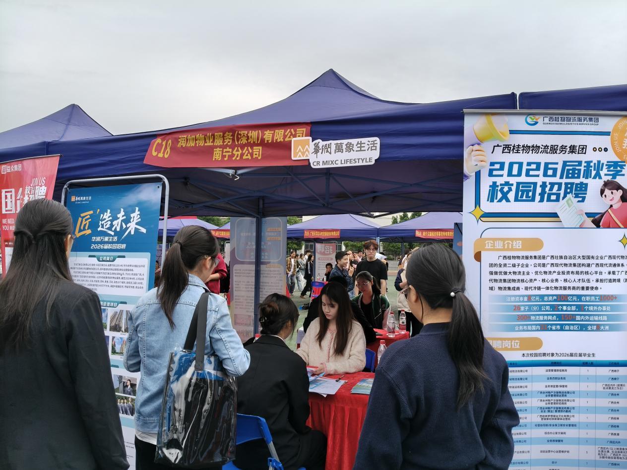 为持续推动我院2026届毕业生高质量就业,进一步拓宽学生就业视野,促进校企精准对接,助力学生把握优质就业机会,11月1日9:00-14:30,数字经济学院组织2026届毕业生前往广西财经学院相思湖校区足球场,参加由广西壮族自治区教育厅、人力资源和社会保障厅、卫生健康委员会、人民政府国有资产监督管理委员会及高等学校毕业生就业创业指导中心联合主办,广西财经学院承办的“广西2026届财经类高校毕业生就业双选会”。此次双选会作为我区财经类高校毕业生就业服务的重要平台,吸引了众多优质企业参与,为学生提供了丰富的职业发展机遇。