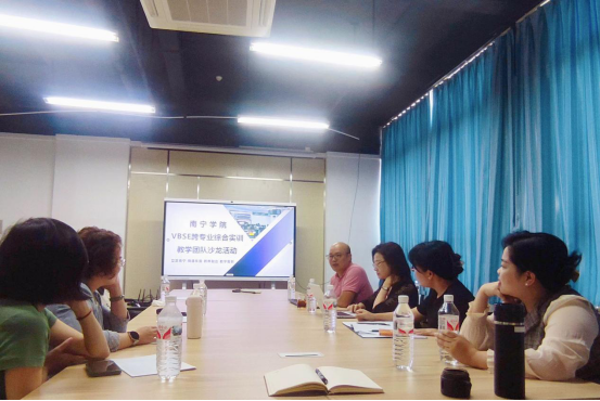 为总结VBSE跨专业综合实训教学团队建设成果,分享教学团队建设经验,探讨课程团队未来建设的方向,2023年10月19日下午,南宁学院数字经济学院在学院实验实训中心会议室举办“VBSE跨专业综合实训教学团队建设经验分享”教学沙龙活动。数字经济学院与商学院VBSE跨专业综合实训教学团队骨干成员出席了此次活动。