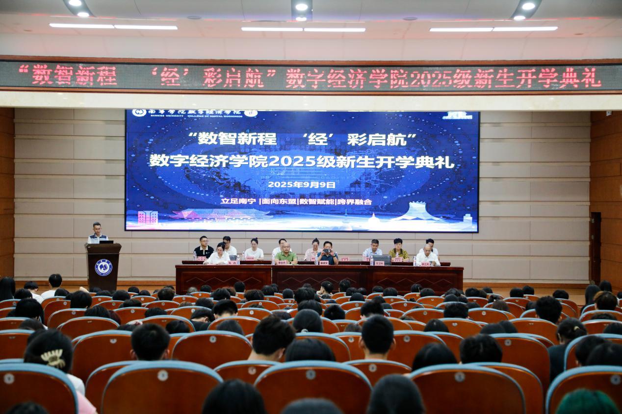 此次开学典礼不仅为新生搭建了认识学院、融入集体的平台,更通过师生间的真诚交流凝聚了师生共识,为学院新学期人才培养工作的开展奠定了良好基础。同时,老师们对同学们的成长寄语,也为新生指明了努力方向,激励着全体新生以饱满的热情开启大学生活,在数字经济领域书写“经”彩人生篇章。(文/谭静怡 图/隋泽宇、彭乙涓 一审一校:李孜 二审二校:曾桂玲 三审三校:韦丹)