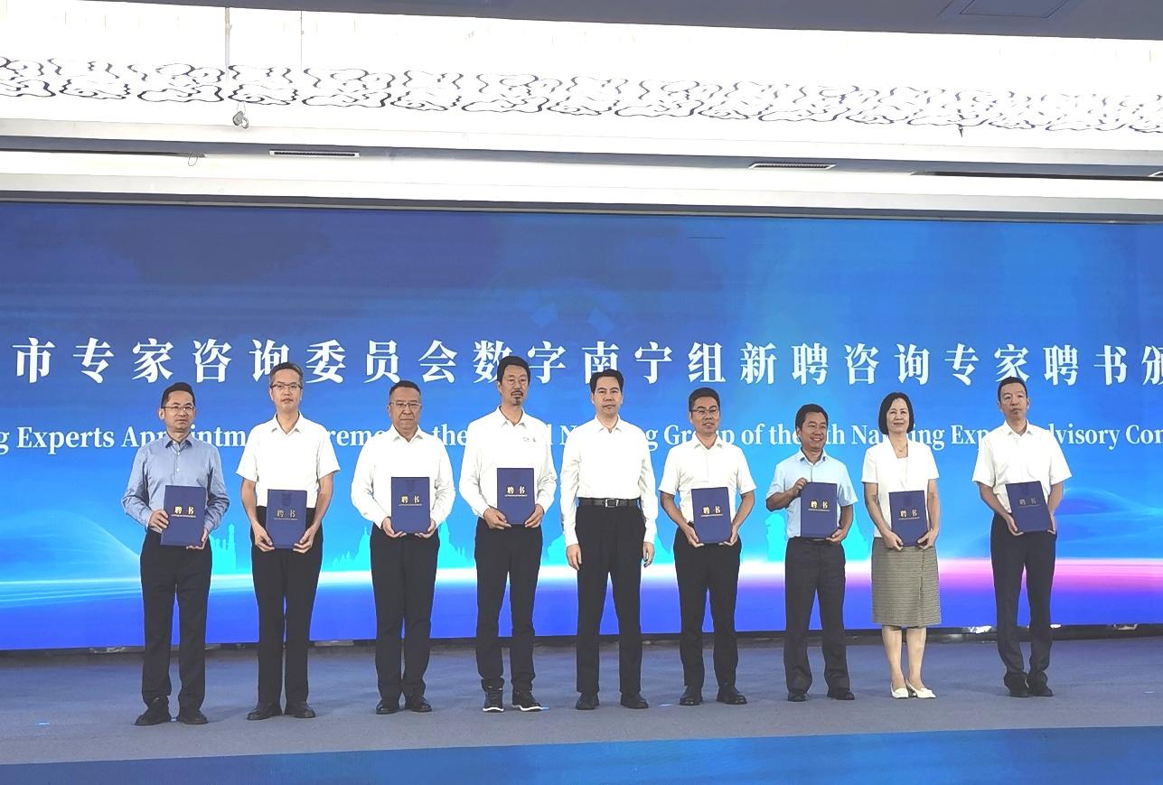 最后,会议同步举行数字南宁咨询专家聘任仪式,南宁市统战部部长、副市长韦江同志为我校数字经济研究院李建伟教授颁发南宁市专家咨询委员会数字南宁组咨询专家聘书。专家聘书不仅是对李建伟教授在对南宁市数字经济发展方面做出贡献的肯定,也是近年来数字经济学院科研工作质量提升的见证,更是南宁学院学科研究水平提升及科研潜力的彰显。李建伟教授表述,一定不辜负南宁市领导的期望,认真履行专家职责,带领数字经济研究团队,为助力南宁南A中心建设、发展南宁市数字经济贡献南宁学院及数字经济研究院科研平台的智慧和力量。( 图文/侯文剑 一审一校:李孜 二审二校:曾桂玲 三审三校:韦丹)