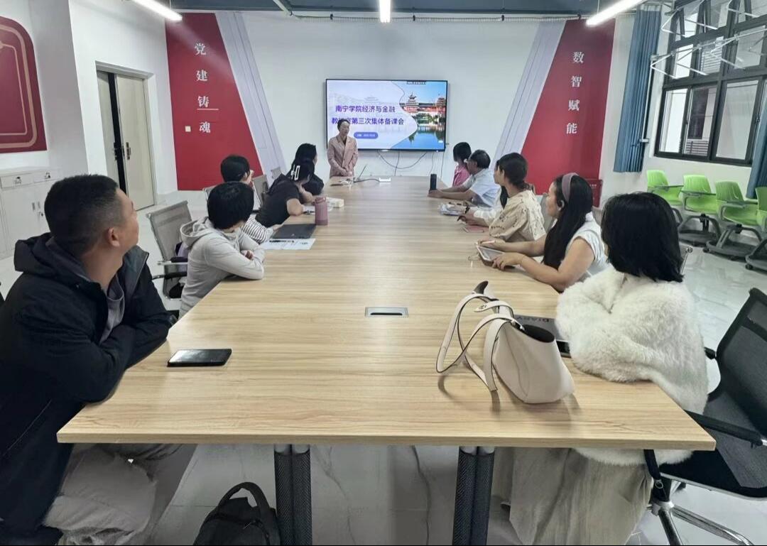 会议最后,邓主任对本次备课会进行总结。她指出,本次集体备课会实现了教学资源的有效共享和教学思路的深度碰撞,为后续教学工作开展奠定了坚实基础。他要求全体教师将本次研讨成果切实转化为教学实践,持续聚焦学生核心素养培养,结合数字经济发展趋势和新文科建设要求,不断优化教学设计、创新教学模式。同时强调,经济与金融教研室将定期常态化开展集体备课、磨课评课等教研活动,推动教研与教学深度融合,为培养高素质经济金融人才提供有力支撑。