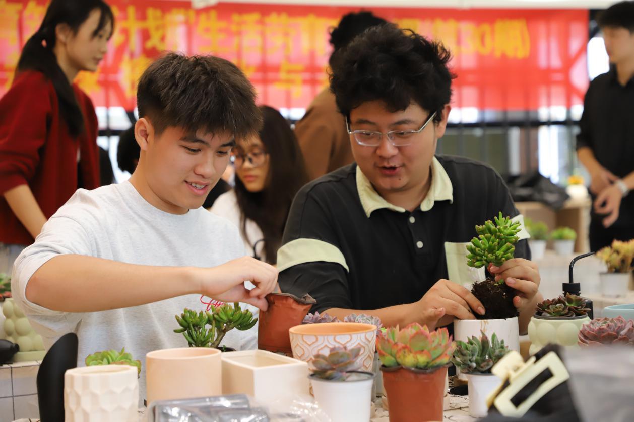 随着一盆盆形态各异的多肉盆栽逐渐成型,活动现场绿意盎然。饱满的叶片、错落的造型搭配精致的花盆,每一件作品都凝聚着同学们的创意与汗水。同学们纷纷拿出手机,为自己的 “劳动成果” 拍照留念。不少同学表示,第一次亲手种植多肉,不仅学会了实用的养护技能,更在细致操作中体会到 “慢工出细活” 的劳动哲理。