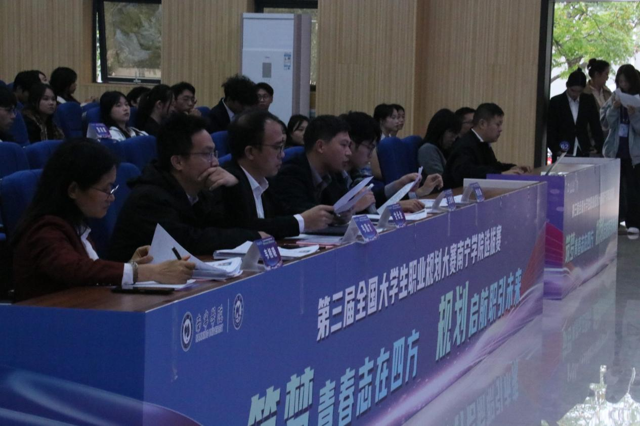 为引导大学生树立正确的成才观、就业观和择业观,科学合理规划学业与职业,提升就业竞争力,12月3日下午,第三届大学生职业规划大赛就业赛道南宁学院选拔赛在敷文园E104顺利举行。担任本次大赛的评委有:高等院校大学生赛事研究院大学生赛事指导专家、生涯规划专家伦礼民;GCDF 全球职业规划师韦相晓副教授;广西哲途企业管理咨询有限公司副总经理王雄斌;广西通量能源技术有限公司副总经理韦昌才以及广西星耀智云科技有限公司项目总监甘长金。评委团将围绕职业规划的科学性、可行性、创新性及与市场需求的契合度等核心维度,为参赛选手提供精准专业的指导与点评,助力学生提升职业规划能力与就业竞争力。