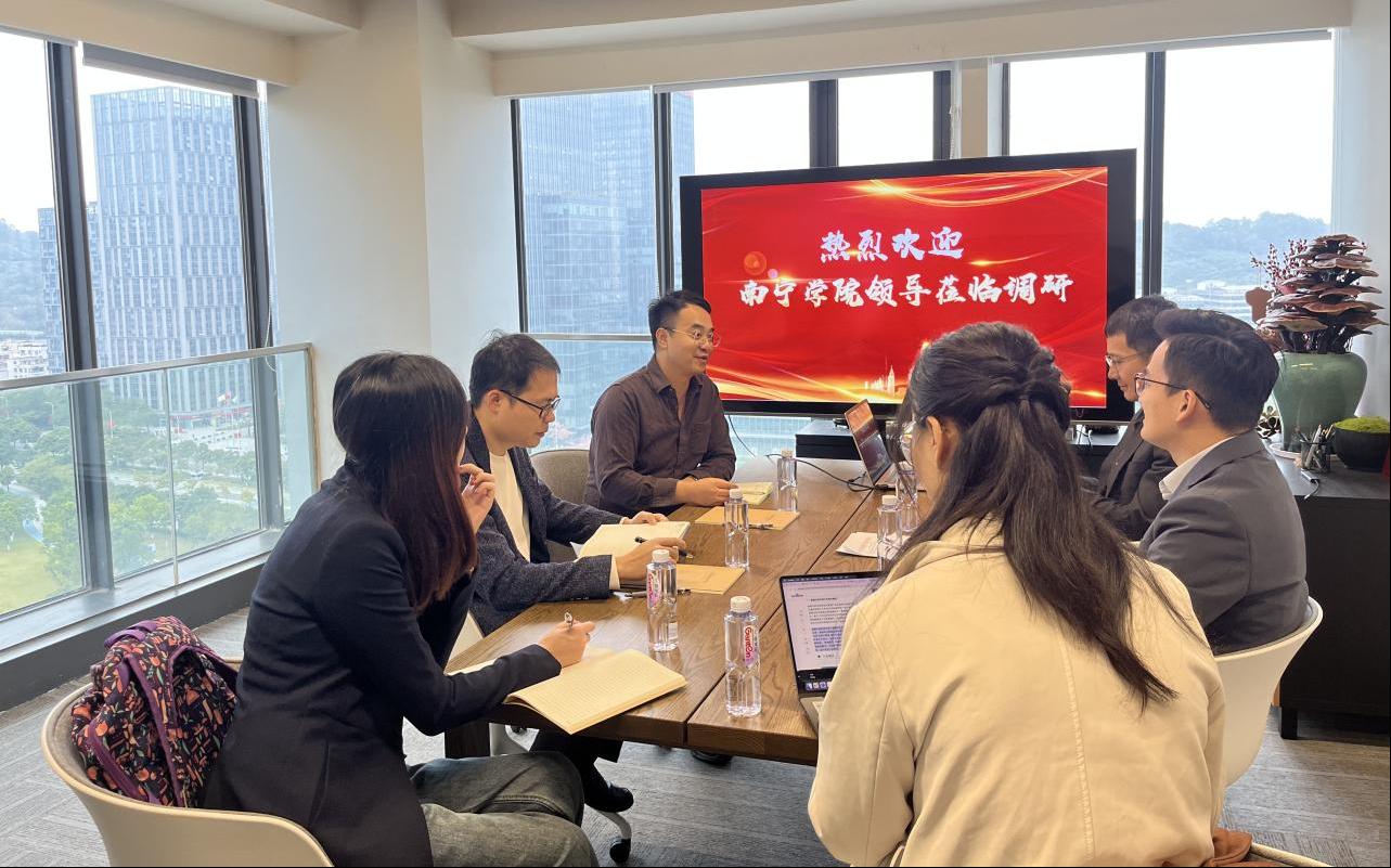 12月3日至5日,我院科研与学科建设科负责人侯文剑、大数据管理与应用教研室主任刘昊、专业负责人刘宛茹和教师代表梁爽一行,赴广州稳诺数据有限公司开展调研交流。双方围绕专业建设、人才培养、校企合作、实验室共建等议题进行了深入探讨,并就未来合作方向达成多项共识。