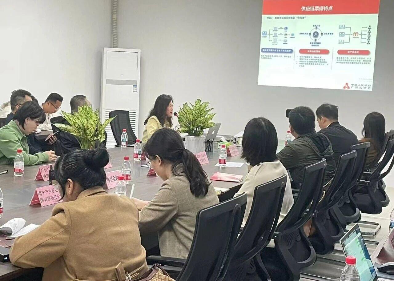 活动中,中国人民银行广西区分行的特邀嘉宾围绕近期供应链金融政策及供应链票据业务展开了详细讲解。嘉宾通过分析供应链金融政策背景及内容,并结合广西本地的供应链金融发展情况,为参会人员指明了未来政策的重点方向。作为高校代表,能够近距离接触到这些政策内容,对学院教学与科研工作具有重要指导意义。特别是在应收账款电子凭证业务要求、风险预警及合规服务等方面的深度分析,对供应链金融的合规性和风险防控有了更加清晰的认知。