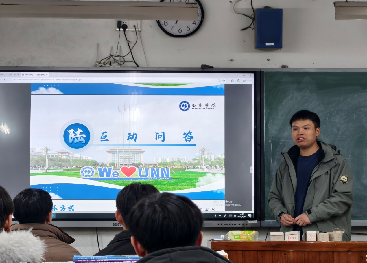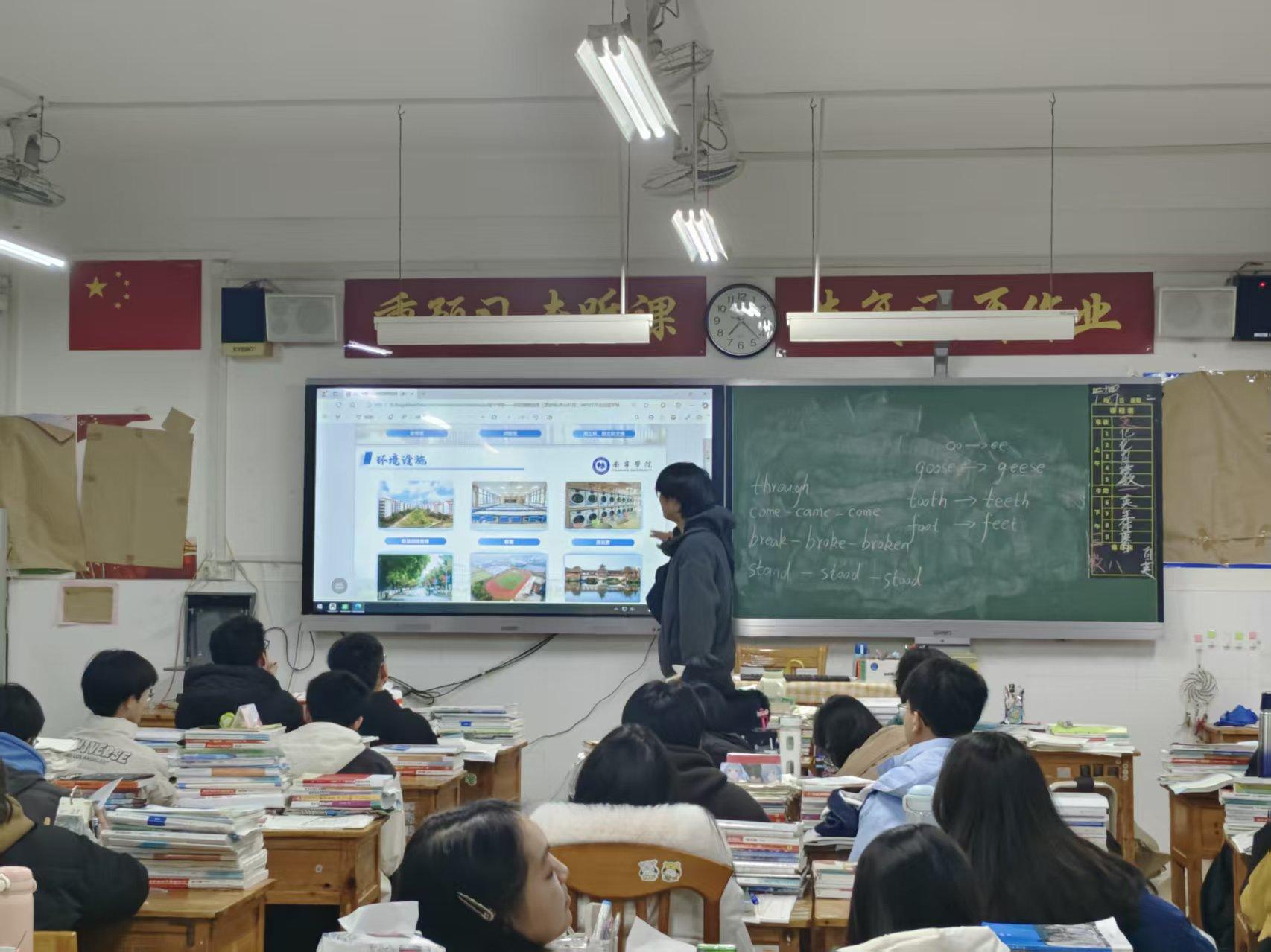 1月26日,招生宣传团队首站抵达贺州第四高级中学。宣讲人刘睿祺借助精心制作的 PPT,从学校概况入手,向在场学子全面介绍南宁学院的发展历程。从 1985 年民革广西区委创办邕江大学,到 2012 年升格为本科高校并更名,再到 2021 年获批广西立项建设新增硕士学位授予单位,深厚的办学底蕴让同学们对南宁学院有了初步认识。随后,刘睿祺围绕学校地理位置展开讲解,重点介绍了地处五象新区核心区域的优越区位,地铁4号线清平坡站近在咫尺,多条公交线路及共享单车配套,以及周边南宁东站、吴圩国际机场、万达茂等完善的交通与生活设施,让同学们直观感受到校园的便利生活圈。在专业设置方面,刘睿祺详细解读了学校涵盖工学、管理学、经济学、教育学等多个学科门类的专业体系,着重介绍了数字经济学院的金融科技、数字经济、大数据管理与应用、经济与金融等特色专业。同时,他还分享了学校优美的校园环境,75.21万平方米的占地面积、66.43万平方米的校舍建筑面积,以及 AAA 级旅游景区“不孤湖”景区、现代化的教学楼、图书馆、体育馆等设施,让同学们心生向往。